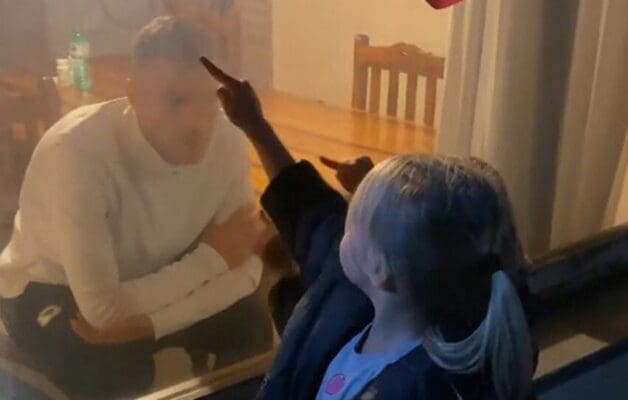 Momento romantico quello tra Dzeko e i figli, divisi da un vetro causa Quarantena, il bosniaco e i bambini giocano teneramente