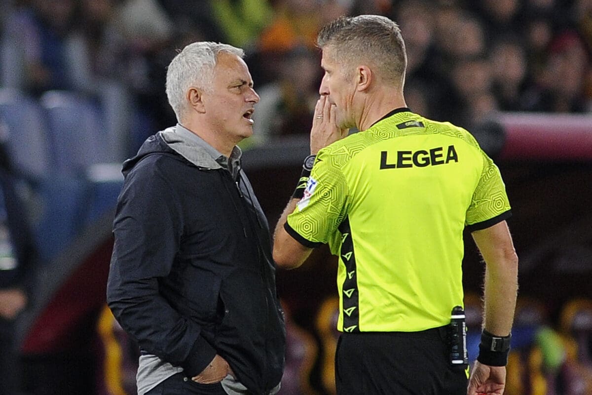 L’ARBITRO DANIELE ORSATO PARLA CON JOSE’ MOURINHO ( FOTO DI SALVATORE FORNELLI )